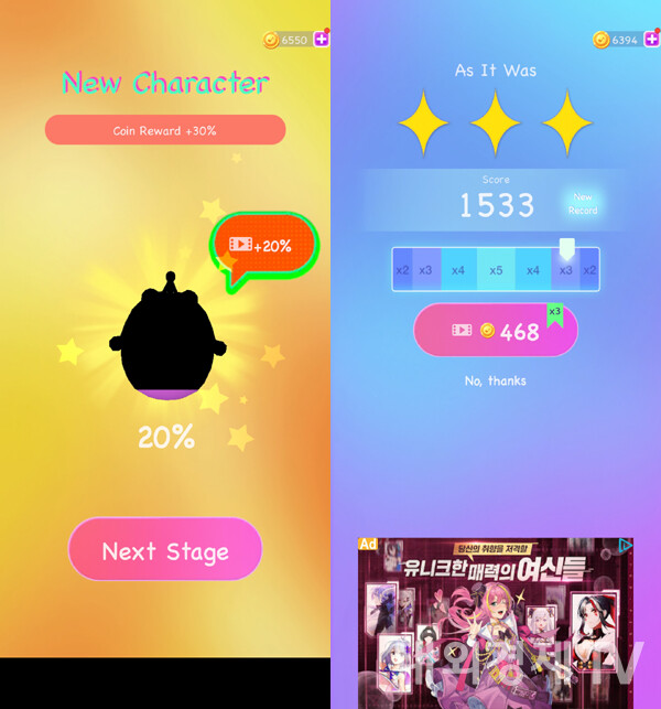 이러한 재미와 좋은 느낌을 유지할 수 있는 연계 콘텐츠는 광고에 막히게 되는데 참으로 계륵이다. 인앱 결제보다 보상형 광고를 주력 모델로 선택한 게임이 겪는 문제로 1분도 되지 않는 플레이 타임을 위해 1분 이상의 광고를 보게 되는 반감을 무시할 수 없기 때문이다.