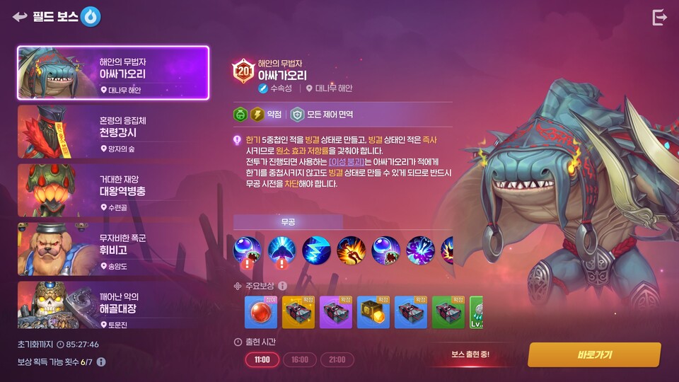 어차피 성장은 전투의 반복이다. 초반에는 공략을 논할 수 있는 새로운 방식의 전투 시스템이지만, 익숙해지면 스펙업 위주의 전투로 단조롭게 변할 수밖에 없다. 만약 MO만 존재하는 수집형 RPG였다면 더 이상 올라갈 곳이 사라지면서 지쳤겠지만, 호연은 필드 보스를 꺼내 들었다.