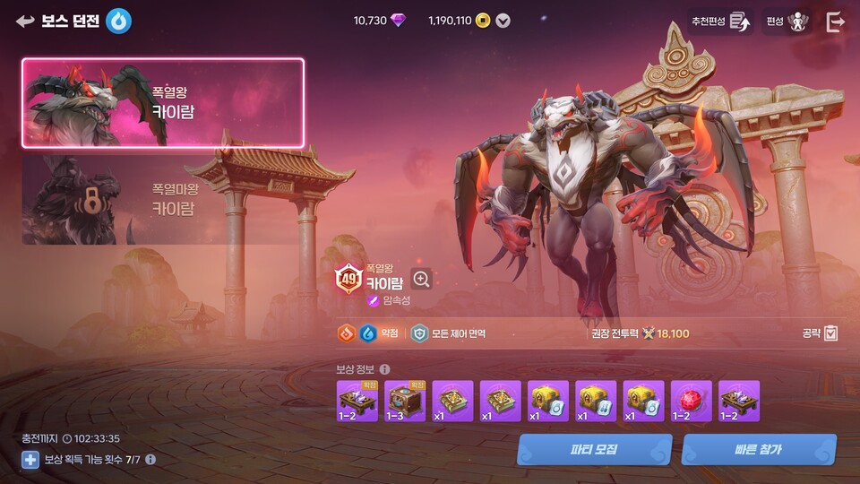 아마도 나름대로 빌드업이 진행 중인 집단과 스펙업을 완성한 집단의 스트레스(?) 테스트를 위해 보스를 등장시켜 좌절과 성취감이라는 숙제를 던진 듯하다. 속칭 보스도 못 잡는 파티라면 극단적으로 게임을 포기하는 게 아닌 이상 시간이 걸려도 다시 키우러 가기 때문이다.