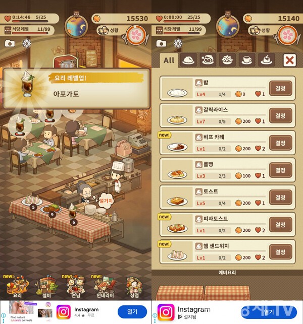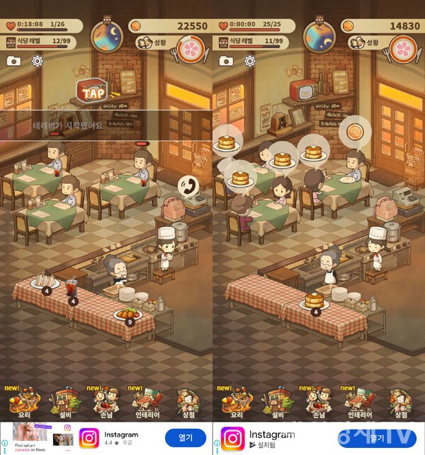그 결과 손님이 선호하는 음식을 사전에 파악하고, 빠르게 대응하면서 골드(게임머니)를 모으는 게 관건이다.