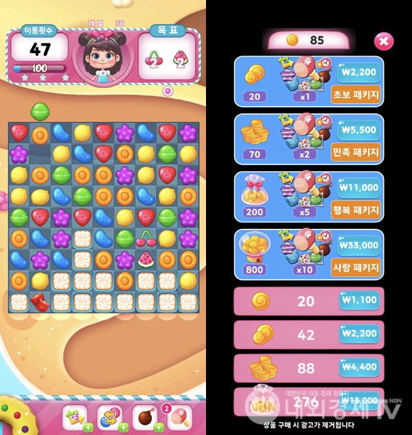 그럼에도 SNG의 빈자리를 방치형 클리커가 채우지만, 같은 색깔의 블록을 정렬해 스테이지를 클리어하는 팡류의 인기는 여전하다. 예년과 달리 인기를 시들었지만, 계속 출시되는 게임이 팡류인데 최근 출시된 제이엠디소프트의 캔디조이도 마찬가지다.