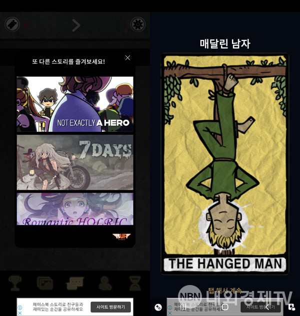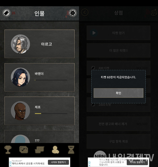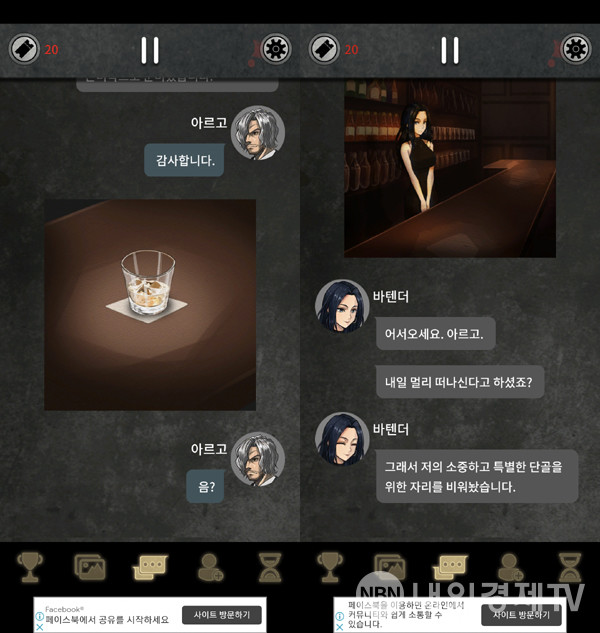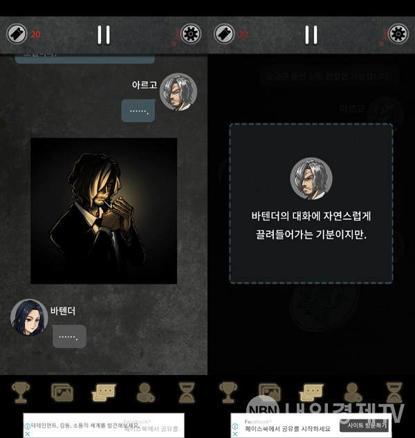 실제 아르고의 선택은 카카오톡의 UI가 녹아내려 채팅방처럼 보이지만, 하나둘씩 선택할 때마다 달라지는 에피소드의 결말이 뚜렷하다. 무심코 터치만 반복하면 티켓이 사라지는데 이조차 보상형 광고로 60개가 지급돼 미니시리즈처럼 연결되는 구조도 독특하다.