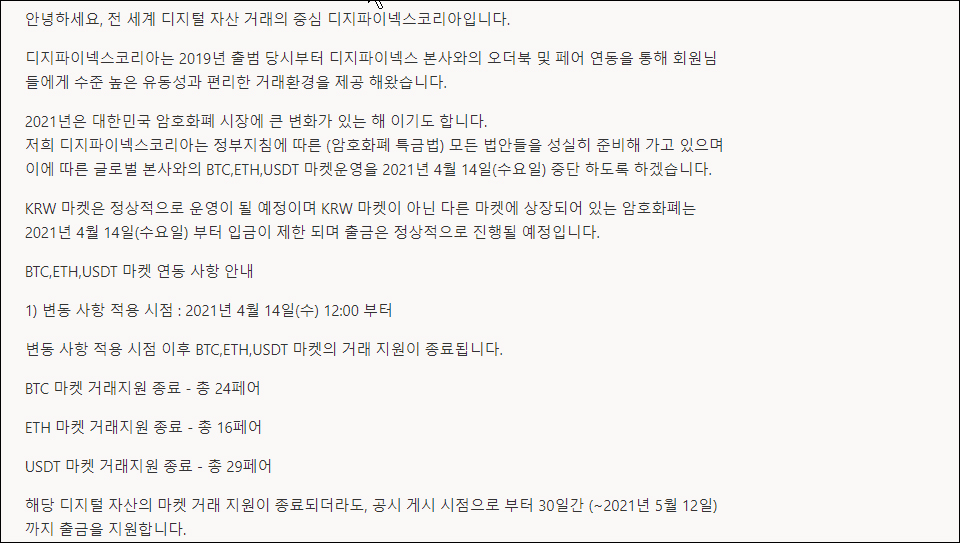 하지만 특금법 시행 이후 ISMS 인증 번호와 실명계좌 발급 심사보다 오더 북 공유와 다크 코인 취급 금지는 국내서 영업 중인 거래소의 필수 조건으로 일부 거래소는 이미 본사와 손절, 자생력을 갖추기 위해 사활을 걸고 있다.