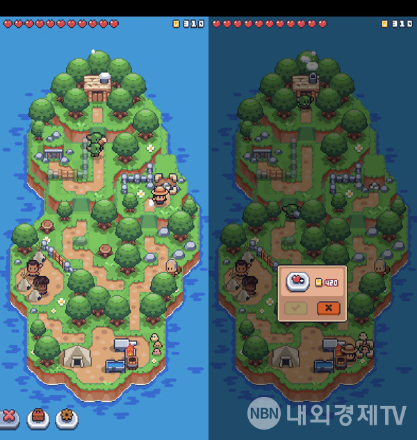 [내외경제TV] 정동진 기자=픽셀 아트라는 단어를 듣고 귀여움, 포근함, 투박함 등이 떠오르고 고전 게임의 향수가 묻어난다면 당신은 올드 게이머다. 이러한 이들에게 추억을 떠올리게 하는 게임이 있으니 바로 '타이니 무인도 서바이벌'로 타이니 픽셀팜과 강아지의 크레페 가게 등을 선보인 추억 소환 전문 개발사의 신작이다.