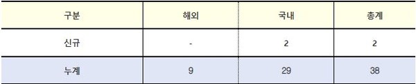 국내 오미크론 감염 환자는 해외유입 9명, 국내감염은 2명 늘어난 29명이 확인되어 총 38명 이라고 밝혔다.