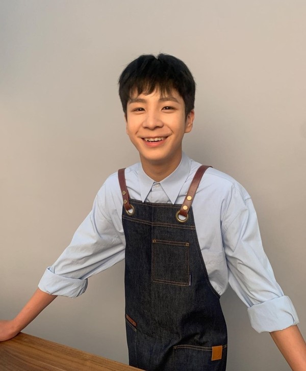 사진 속 정동원은 마치 요리사로 변한 것 같은 모습으로 카메라를 보고 활짝 웃고 있다. 또한, 광고 촬영의 한 장면인 듯 정갈하게 차려진 음식들 앞에 숟가락을 들고 해맑은 미소를 짓고 있다.
