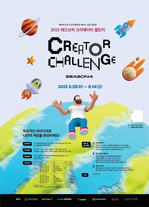 레드브릭 크리에이터 챌린지는 프로그래밍에 관심을 갖고 있다면 누구나 별도의 참가 비용 없이 무료로 참여가 가능하다. 수상자에게는 국내 게임 전시회를 통한 작품 전시, 자사 인턴십의 기회 등 다양한 특전이 주어진다.